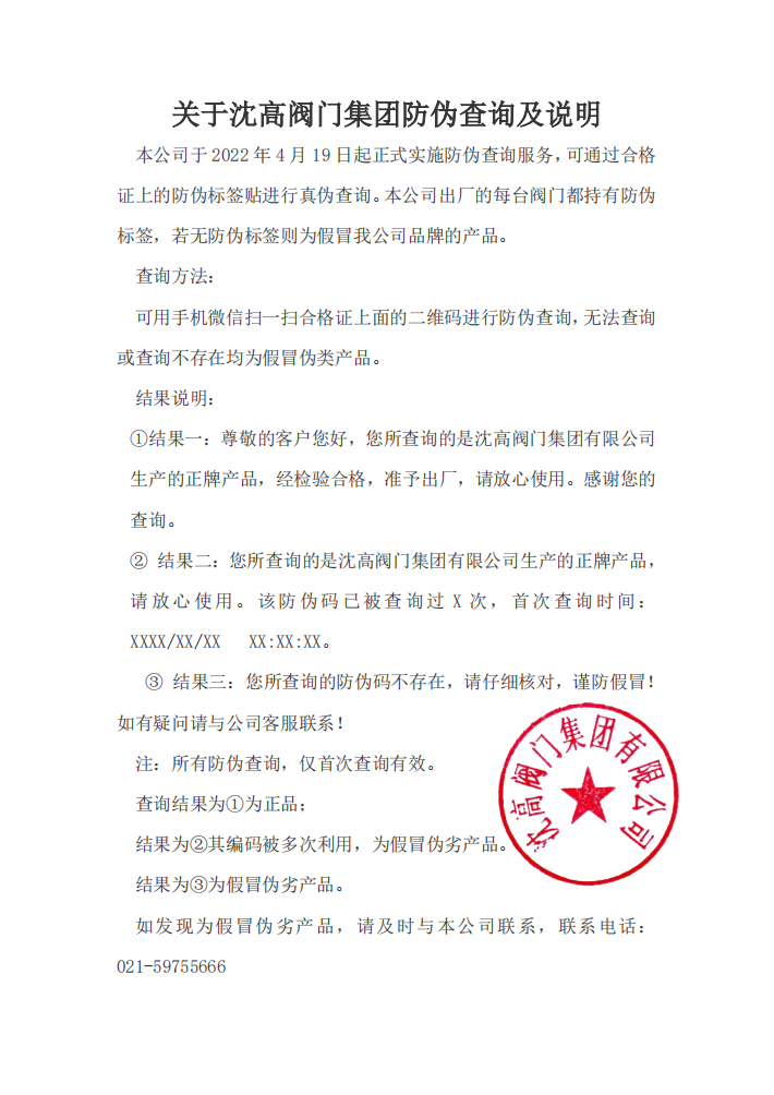 关于沈高阀门集团防伪查询及说明 -凯发真人